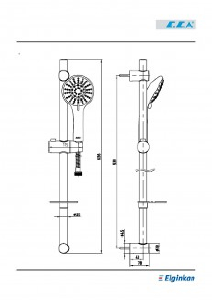 2. Душова штанга 600мм (хромована латунь), торцеві тримачі (пластик), рухоме кріплення для лійки з кнопковим фіксатором положення і кута нахилу.
