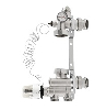 Даний змішувальний вузол застосовується для монтажу низькотемпературних систем опалення (типу «водяна тепла підлога») спільно з високотемпературної системою (радіаторне опалення). Монтується на колекторної групи низькотемпературного контуру, підключається до високотемпературного контуру системи опалення. Можливе підключення насоса довгою 130 мм і 180 мм. В насосно-змішувальному вузлі KOER для водяних теплих підлог приготування теплоносія з температурою від 20 до 60 ℃ відбувається за рахунок підмішування рідини з зворотної лінії. Регулювання здійснюється двухходовим клапаном, встановленим в подає колекторі і керованим термостатичною головкою з виносним занурювальним датчиком, який розміщений на виході змішувача вузла. (При використанні контролера опалення функція управління клапаном передається йому). Балансувальний клапан в лінії підмішування задає співвідношення теплоносія, що надходить з зворотної лінії вторинного контуру і прямої лінії первинного. Корпуси і пробки елементів, накидні гайки виконані з горячештампованной латуні нікельованої, марки CW 617N. Затвори балансувальних клапанів з латуні CW 614N. Матеріал кілець ущільнювачів - етил-пропіленовий каучук EPDM 70Sh.