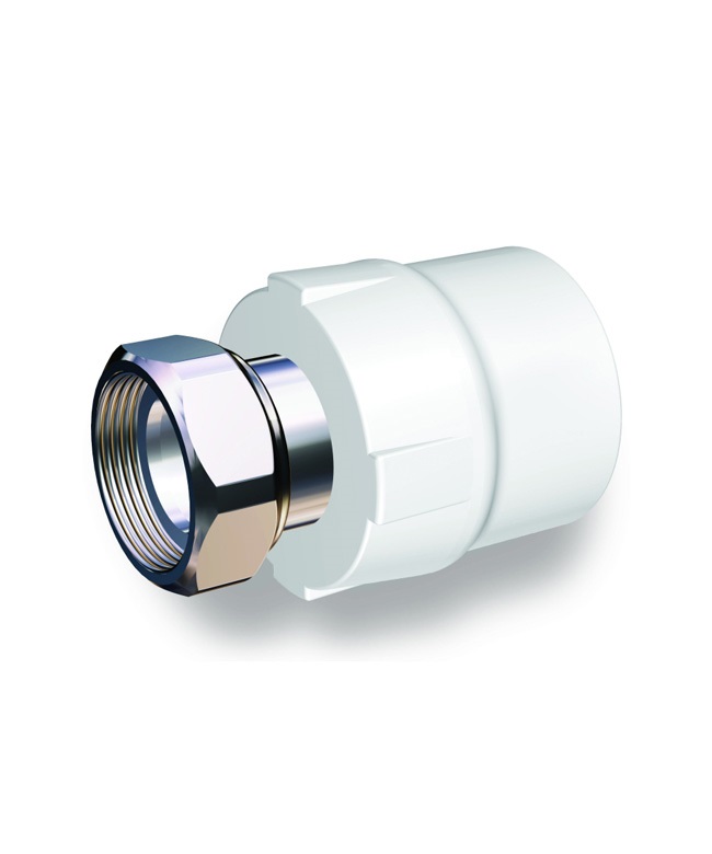 Вид накидной гайки, имее надежное соединение, металлическая втулка позволяет с помощью ключа закрепить накидную гайку на наружной резьбе подключения. Чаще всего используется для подключения сантех приборов. Не нужно паковочных соединений. Используется с прокладкой (в комплекте). Муфта имеет раструб для подключения трубы 20 диаметра, и выступ металический на который надета накидная гайка с резьбой подключения 1/2" . Разборное соединение, высокой прочности, не подвержено термическому расширению. Рабочее давление до 20 МПа. Цвет серый. Материал - PPRC, латунь никелированая.