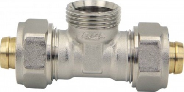 ТМ ЕСА. Обжимной фитинг - предназначен для создания резьбового разъемного соединения полимерных труб. Тройник с резьбовым отводом 1/2" резьба наружная, используется для создания точки подключения. Применяется в системах питьевого и хозяйственного водоснабжения, горячего водоснабжения и отопления для монтажа с металлопластиковыми трубами и трубами PEX. Номинальное рабочее давление - 10 бар. Максимальная температура - 120С. Используется с трубой диаметром 20 мм с толщиной стенки 2мм. Материал - никелированная латунь, уплотнители - EPDM.