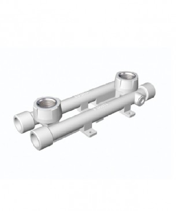 Используется для компактной установки нескольких смесителей, которые расположены на удном уровне на одной стене. Межосевое расстояние 150 мм. Имеет специальные выступы для крепления к твердому основанию. Характеристики - 20-1/2, 6 выходов. Материал - PPRC.